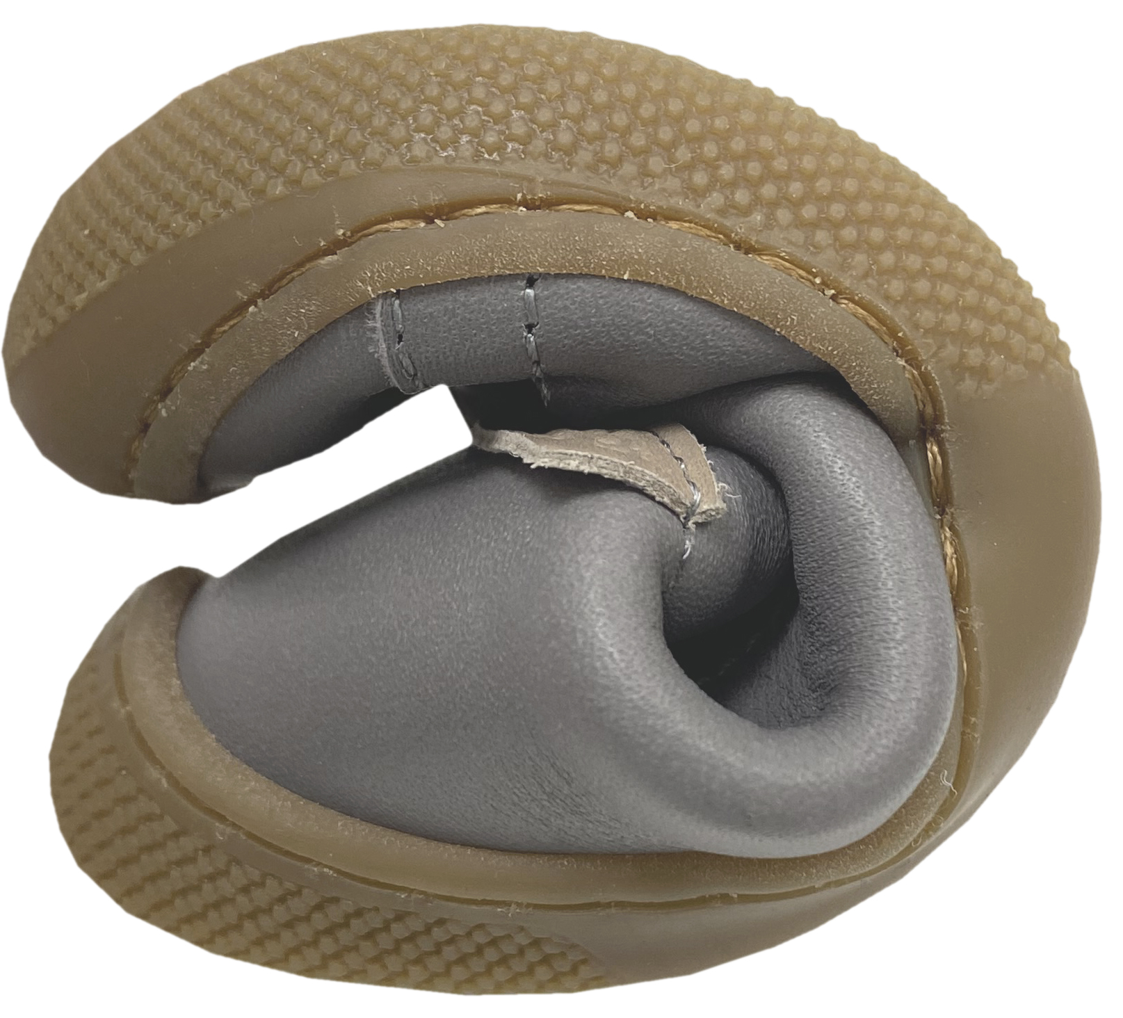 - an der Spitze im Zehenbereich ist die Sohle etwas hochgezogen als Schutzkante