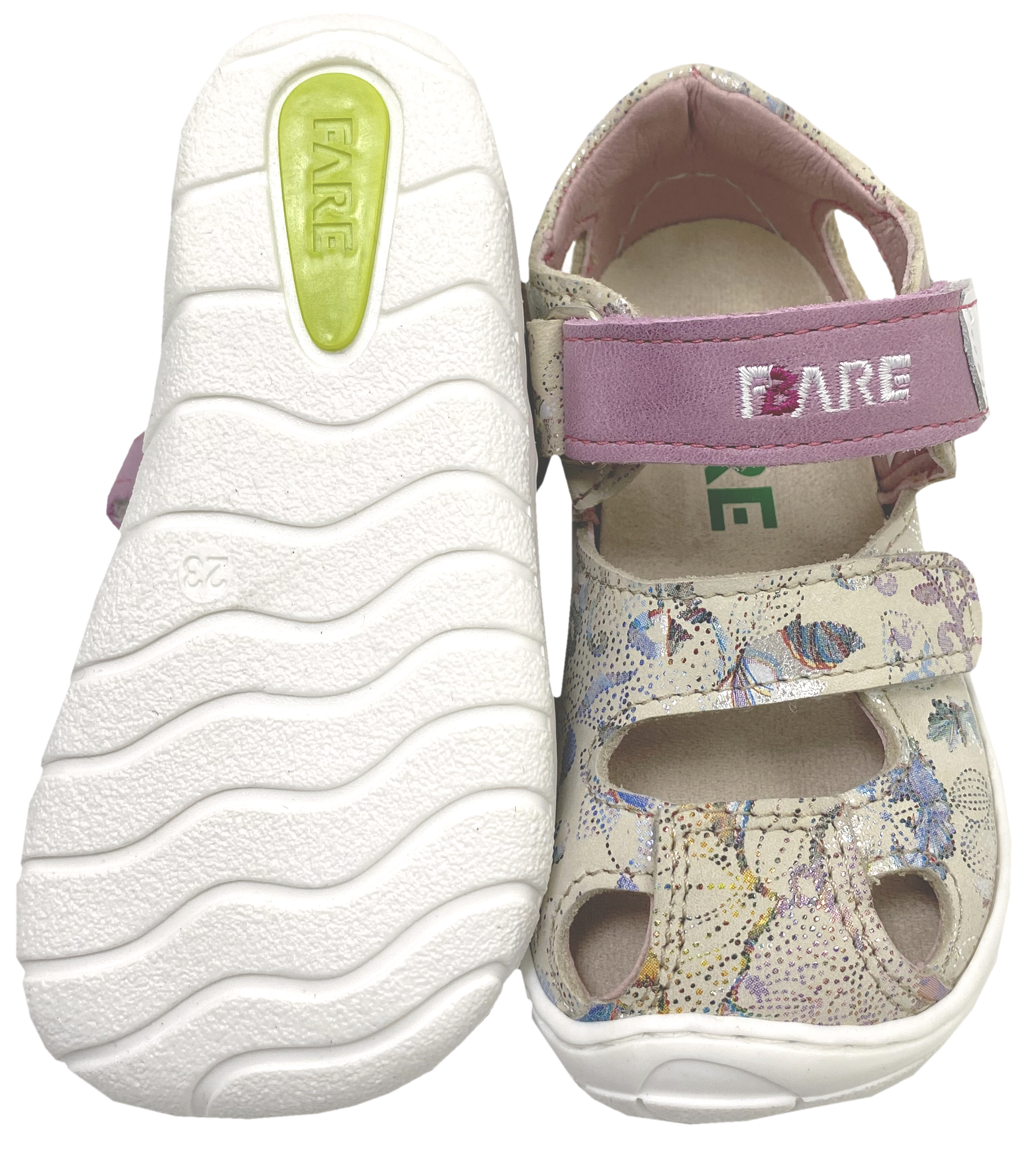 Produktinformationen "Fare Bare Barfußschuhe / Leder Halbsandalen Cremé Glitzer gemustert A Linie 51/261282"