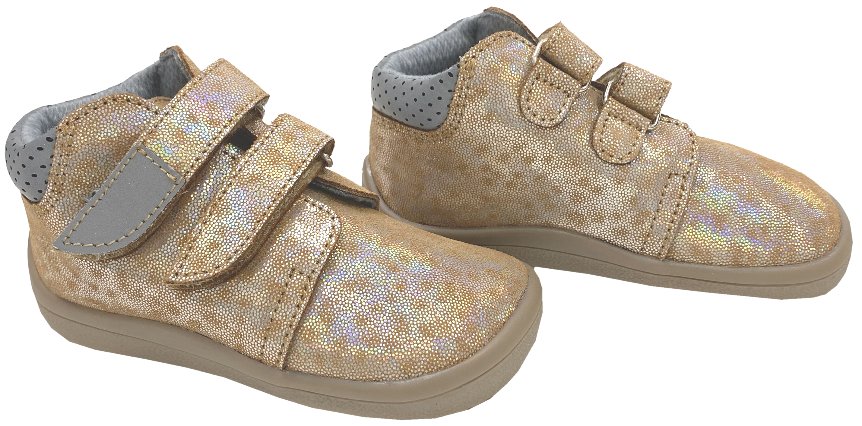 Produktinformationen "Barfußschuhe /Klett Halbschuhe + TEX Membran, Nubuk Leder von BEDA ~ BELLA V2 Gold Glitter"
