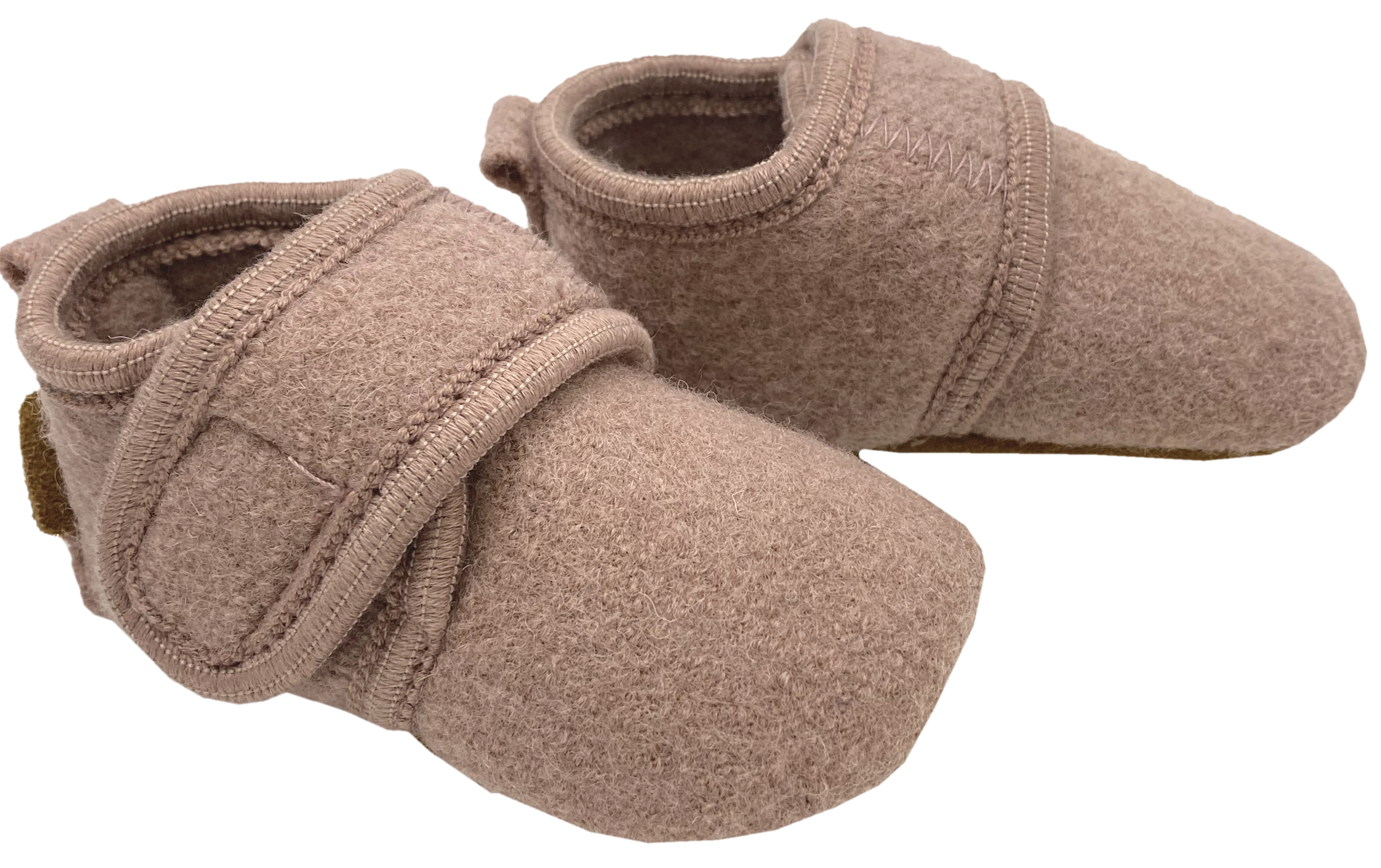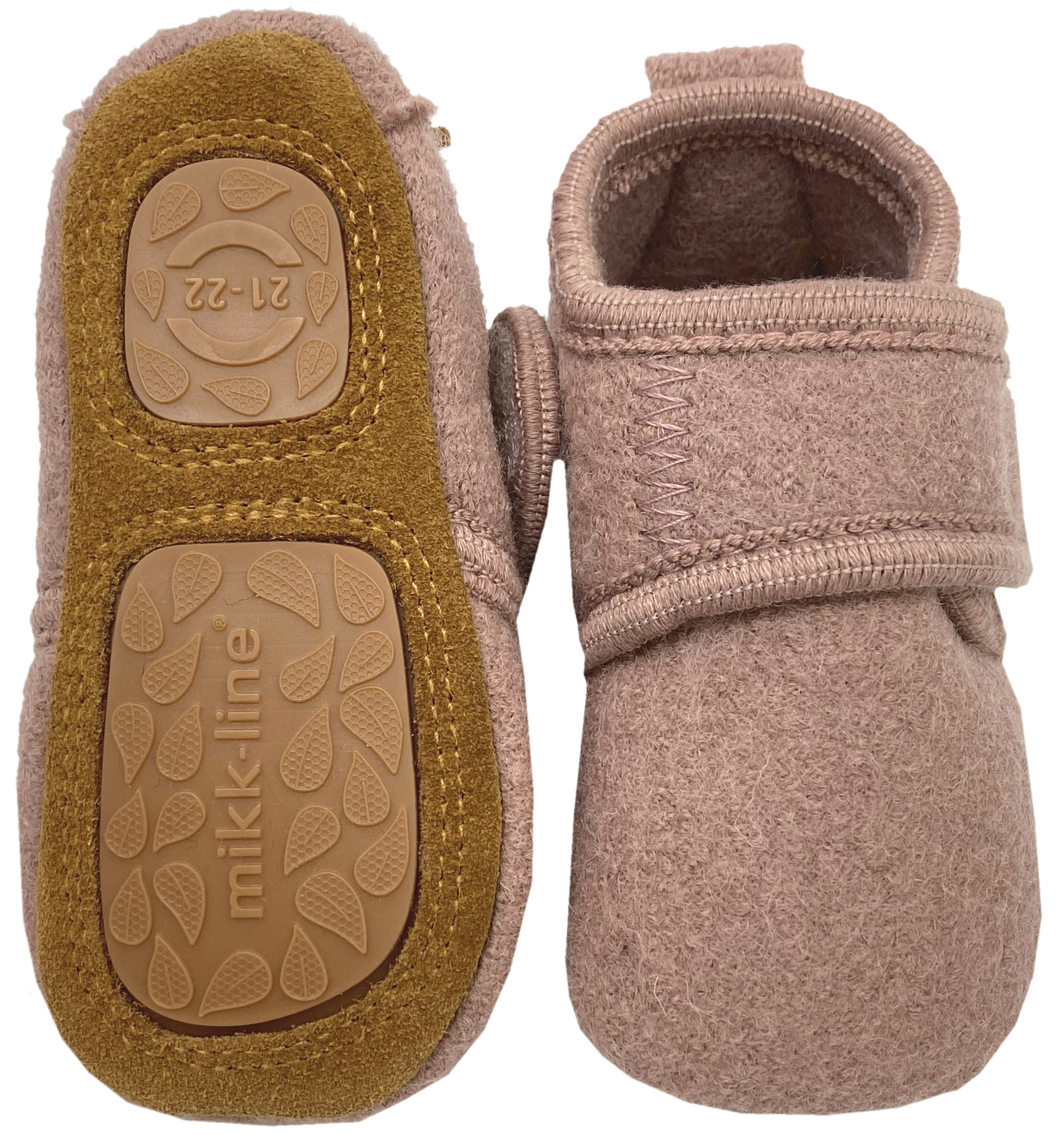 Produktinformationen "Wollschuhe in Altrosa Melange mit Klett + Leder Sohle mit Gummibesatz von MikkLine 20007"