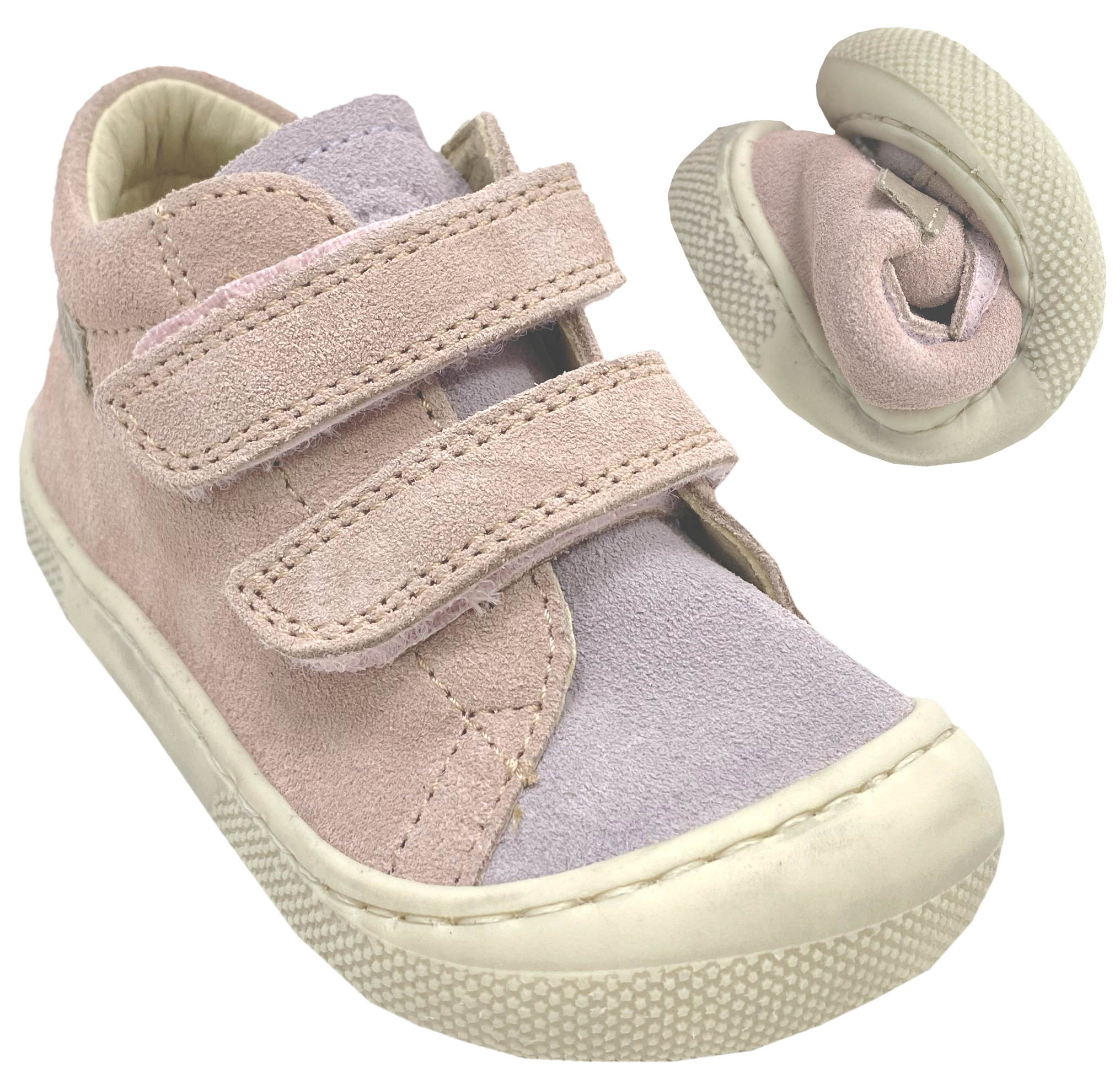 Barfußschuhe aus Wildleder mit Doppelklett Modell AMUR in Lila / matt Rose von NATURINO
