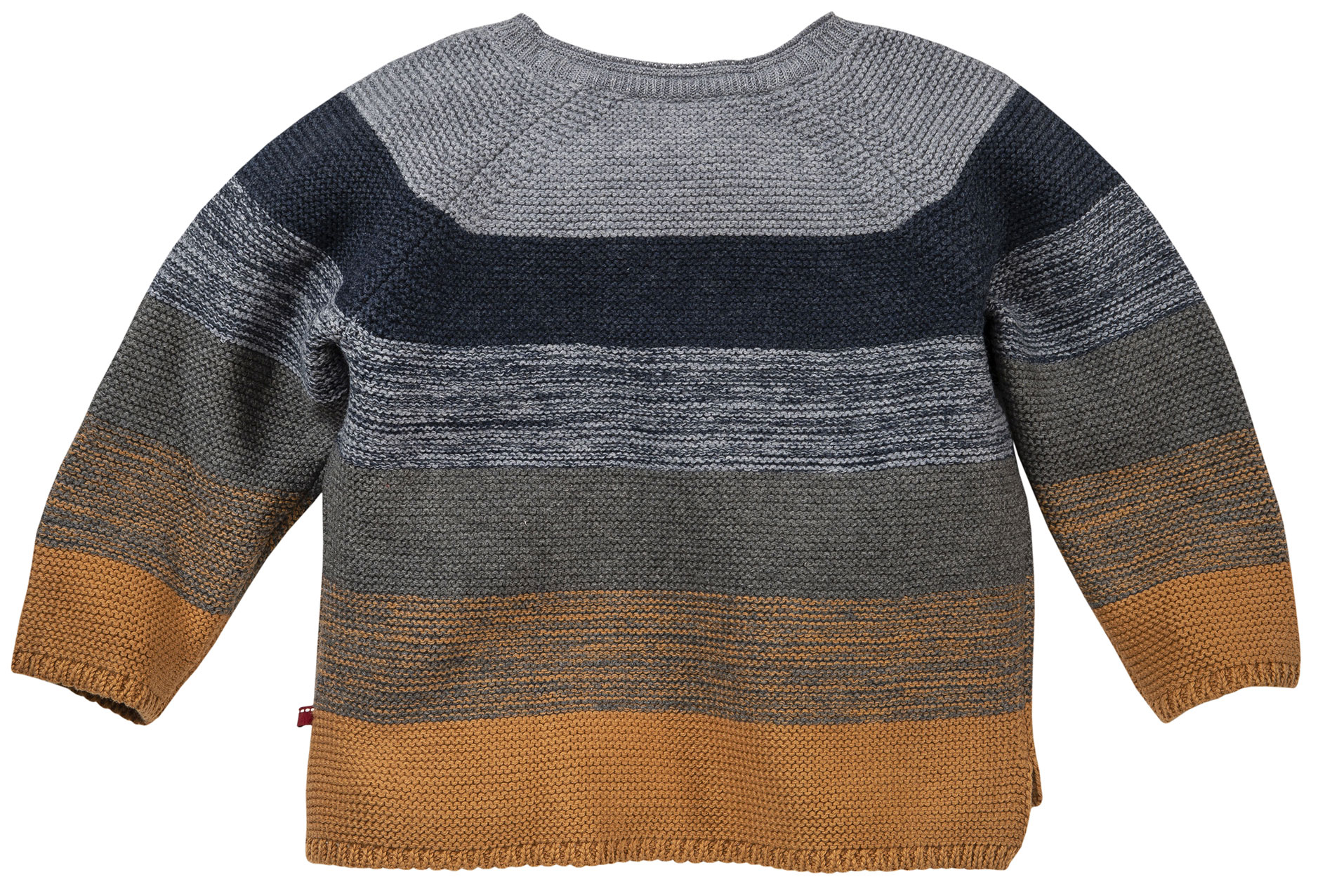 Schicker Strickpullover in gedeckten Farben im schicken Farbverlauf in Blau / Grau / Senf Tönen mit langen Raglanärmeln aus weicher, glatt gestrickter Bio Baumwolle mit GOTS Zertifizierung von PEOPLE.