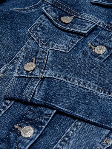 Ein Must Have in jedem Kleiderschrank ist der Klassiker aus Jeans - die Jeansjacke für Girls, in dem typischen Medium Blue Denim mit hellbeigen Ziernähten, derben Logo geprägten Knöpfen in normaler Länge von ONLY Kids.