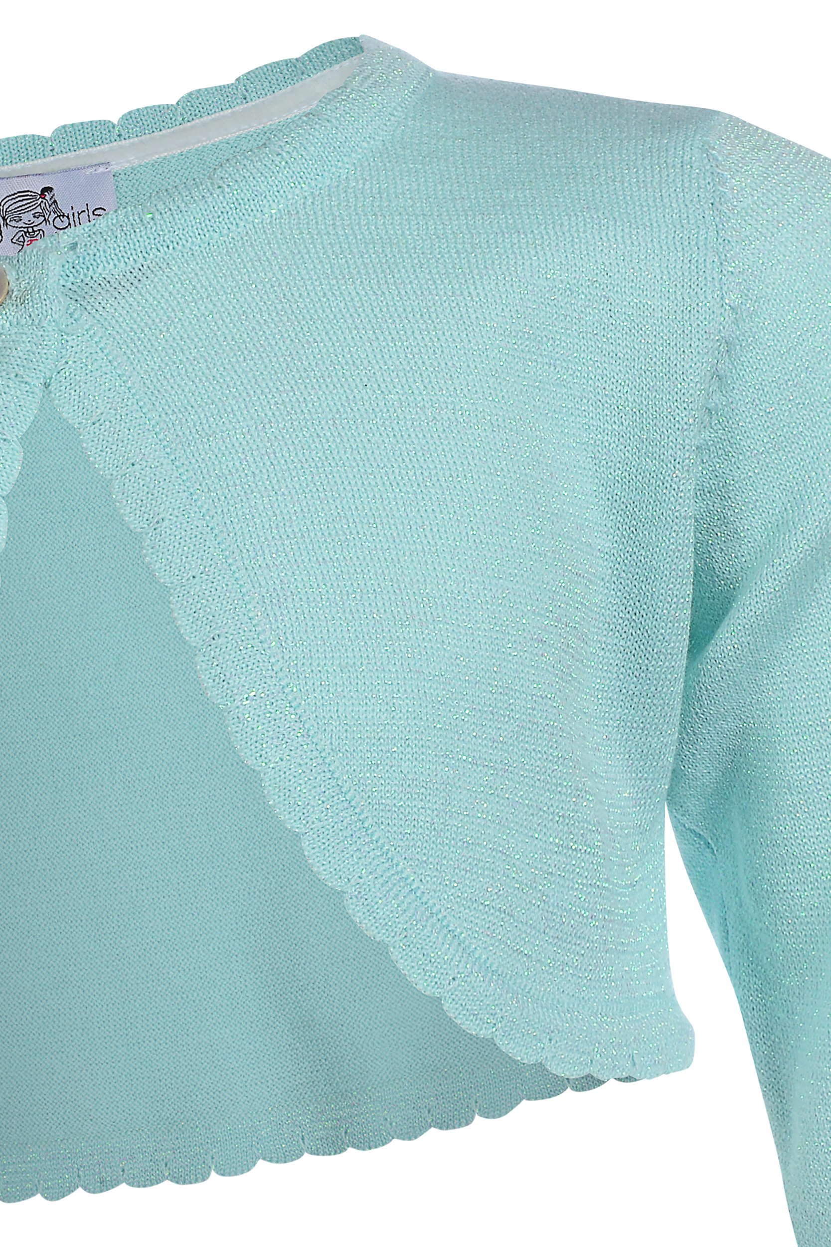 Produktinformationen "Glitzer Bolero Jäckchen aus feinem Glattstrick in Zart Mint / Iceblue von HAPPY GIRLS 364102"