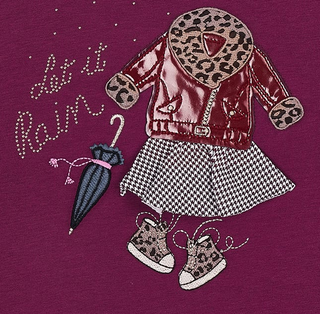 Bequemer und etwas dichter gewebter Sweater in einem tief dunklem Weinrot Ton aus weichem Baumwollmix mit einem wertigen Print und Patch Stick auf der Front für kleine Mädchen von MAYORAL aus Spanien.
