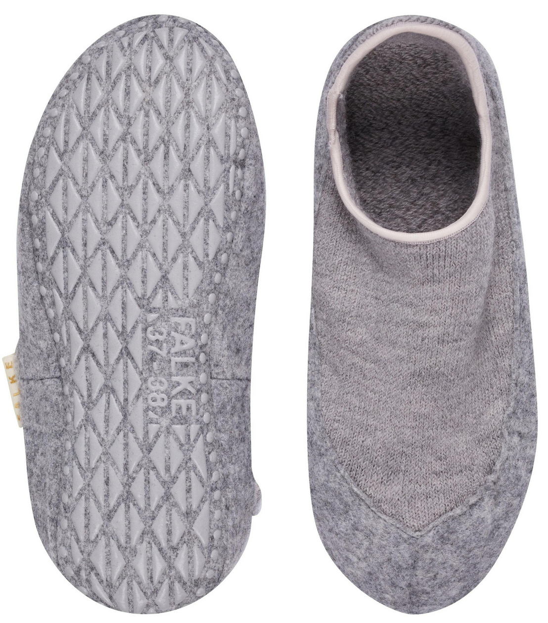 Der beliebte Cosyshoe - eine weiche Haussocke in flacher Sneaker Höhe mit paspeliertem, dehnbarem Abschluß, Hausschuhe aus hochwertiger, weicher Merinowolle mit rutschsicherer Noppen-Filzsohle, fußgerechter rechter und linker Zehenform, aus temperatur regulierender Wolle gefertigt von FALKE.