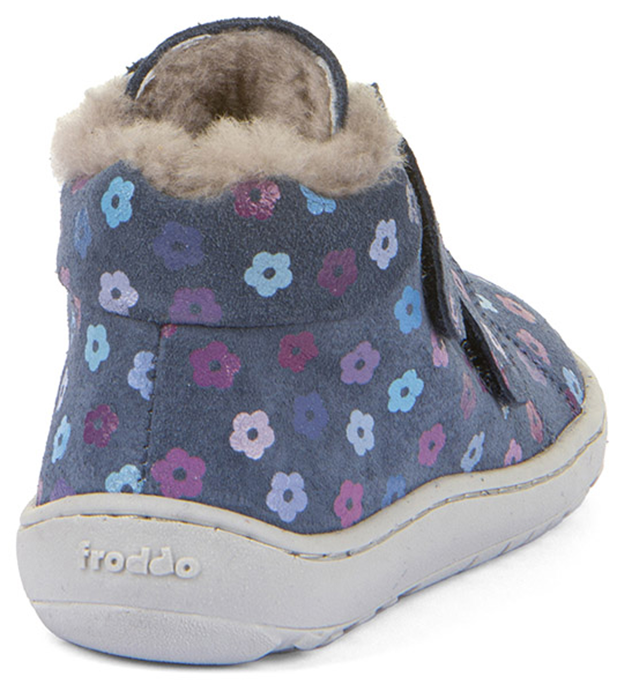 Lammfell gefütterte Barfußschuhe / Winterschuhe Mid Top in Denim geblümt von FRODDO G3110263