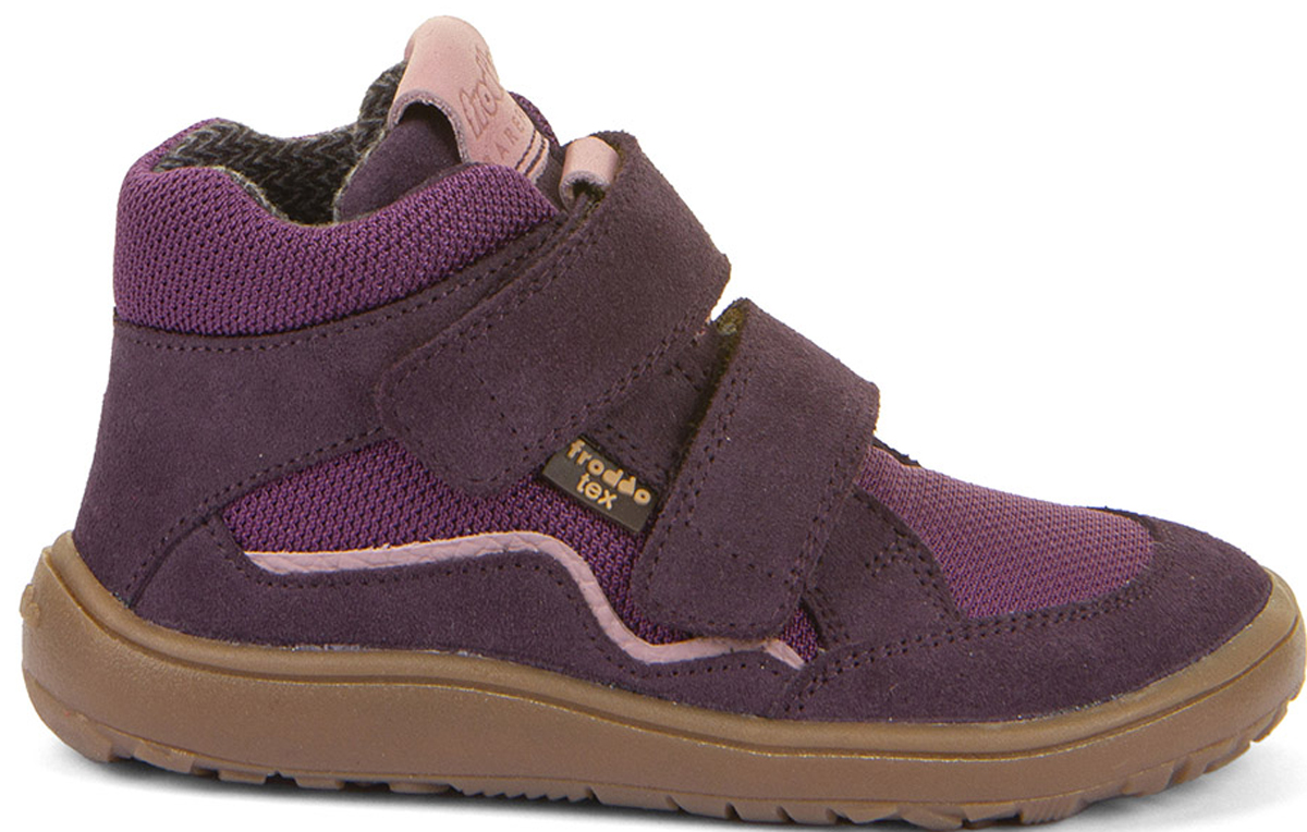 Halbhohe Barfußschuhe mit anatomischer Zehenbox, Nullabsatz und Minimalsohle mit gutem Gripp, aus weichem Nubukleder und Mesh, mit einer Tex Membran zwischen den beiden Materialschichten, mit Doppelklett zur optimalen Regulierung, innen mit angenehm zu tragendem Textil Futter ( kein dickes Winterfutter ) ausgelegt, für Kids von dem kroatischen Schuhhersteller FRODDO.