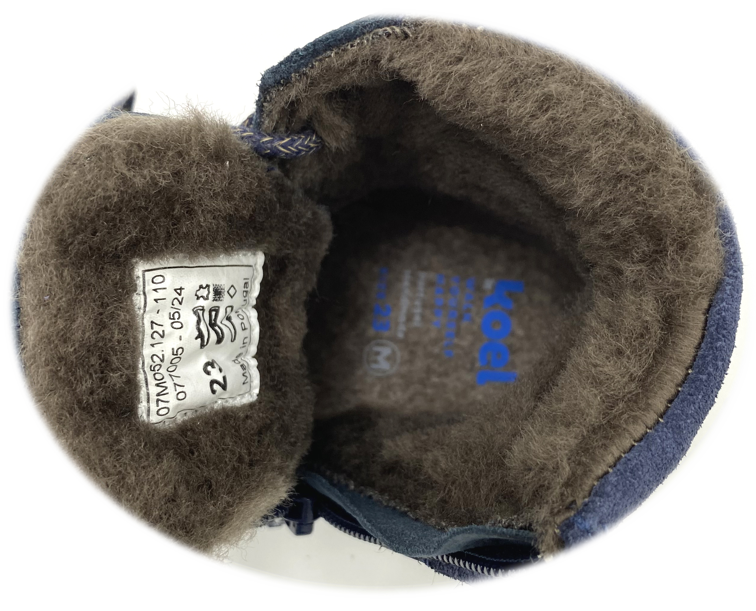 - abgepolsterter Einstieg, Schaftkragen außen aus weichem Nubukleder innen mit weicher Lammwolle abgefüttert seitlich mit dem geprägten KOEL Logo