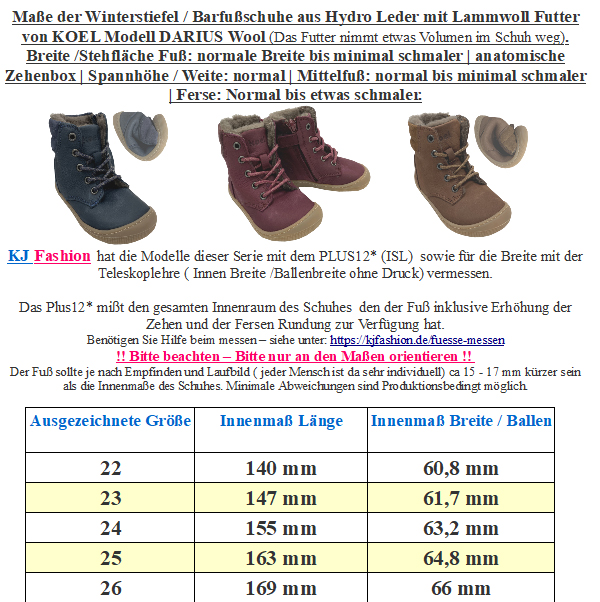 Warm haltender Winterstiefel / Barfußschuhe gefüttert, innen mit Lammwolle ausgelegt, aus Hydro Leder ( Leder hat Naturbedingt eine Wasserabweisende Eigenschaft welche verstärkt wurde beim Gerbungsprozess) , mit derben Senkeln optimal an den Fuß anzupassen und seitlich mit einem unterlegten Reißverschluß zu öffnen, quer und längs flexibler Sohle von KOEL Barefoot.