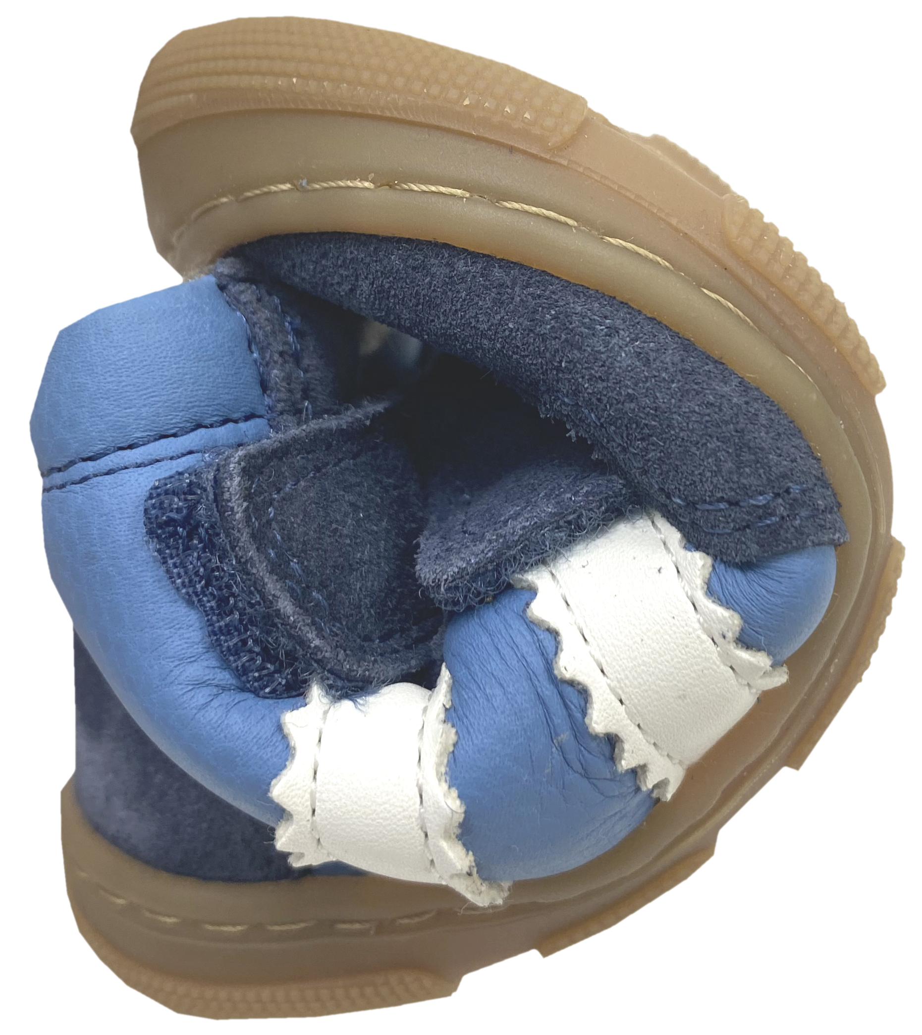 Stylischer und super bequemer Barfußschuh in halbhoher Form, aus Leder mit weicher, quer und längs fexibler Zero Drop Minimalsohle, weichem Fleece Futter und herausnehmbaren Wollsohle, für Kids von SHAPEN Barefoot aus der Slowakai, hergestellt in der EU. !!Bitte beachten Sie das Bild mit den Maßen sowie unseren Paßform Hinweisen um unnötiges hin und her senden zu vermeiden - bei Fragen mailen Sie uns vor dem Kauf gern an - Ihr Team KJ Fashion !! Modell: Mini Urbaneer Leather in Dark Blue / ein mattes JeansblauMaterial: Leder mit Velourleder Besatz, leicht wasserabweisend | Futter: Polyester Fleece mit weicher Haptik, Innensohle fest vernäht + austauschbare Sohle seperat mit kuscheliger Wolle bezogen | Sohle: robustes Gummi, flexibel, gut beweglich mit einer Stärke von 3,5 mm + 2 mm ProfilWeite (diese bezieht sich auf das Volumen / Spannhöhe): für normal hohen bis höheren Spann geeignet | Breite des Leisten (Stehfläche Fuß) Normal bis etwas breiter / V förmig | Mittelfuß: normal | Ferse: normal | Zehenbox: anatomische Form, für dominanten Großzeh geeignet - bequemer Halbhoher Schuh der gut den Gelenkknöchel umfaßt - mit einem Logo gestanztem Dreierklett zu schließen um so optimal an den Spann angepaßt zu werden - farbig abgestimmter Besatz an der Spitze aus Velourleder als Schutzkante, an der Ferse aus Glattleder - Ferse etwas höher gezogen und innen weich gepolstert für ein sehr angenehmes Tragegefühl, Schaftkragen mit Mikrofaserbesatz versehen - super flexible aber dennoch robuste Sohle, genäht für eine lange Lebensdauer - breite Zehenbox in der sich die Zehen beim laufen sehr schön auffächern können Ein super bequemer Barfußschuh mit leichtem Futter für Kids, ohne jegliche Erhöhungen, absolut weich und hergestellt in der EU - von SHAPEN Barefoot.