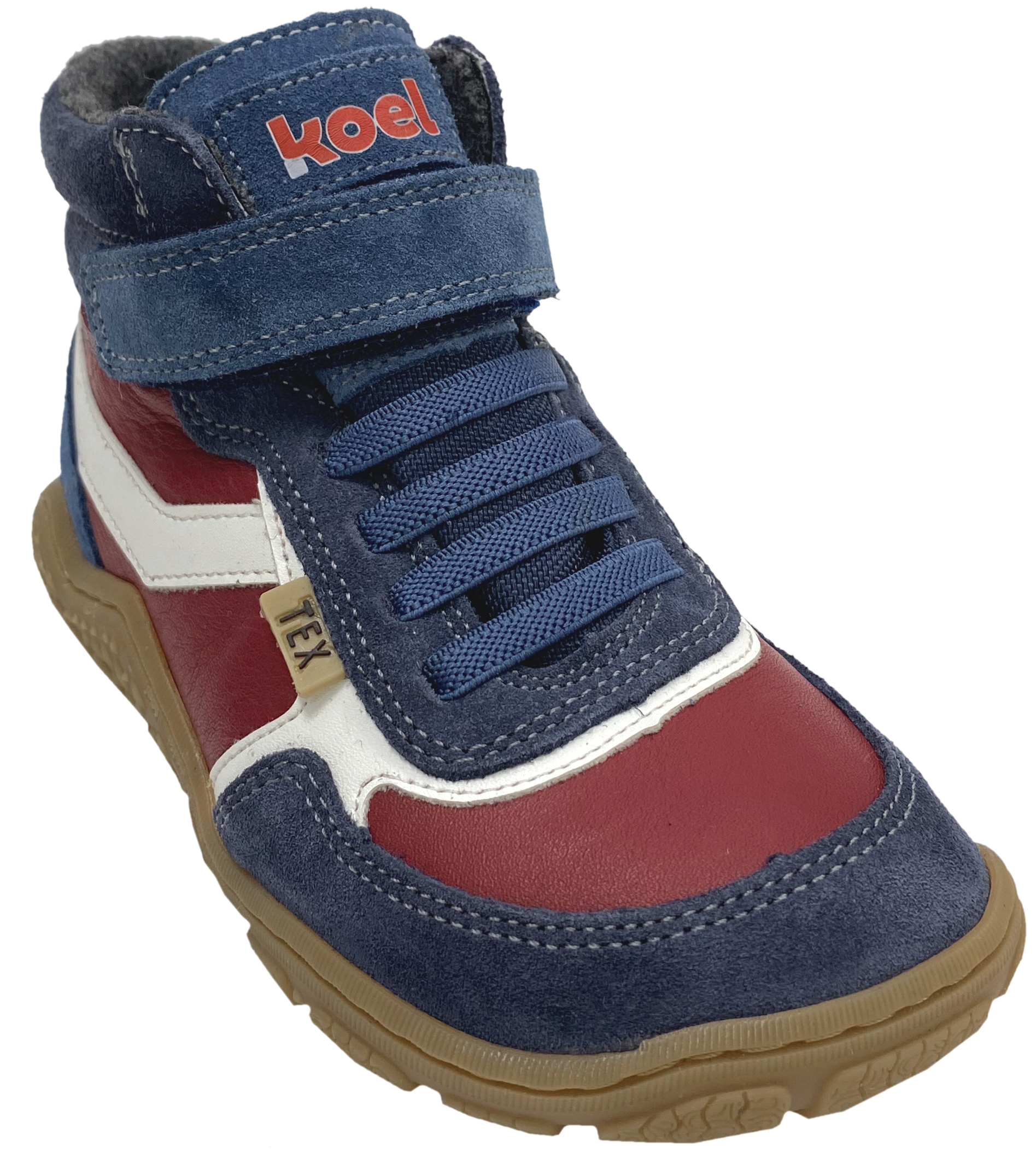 Produktinformationen "Wollgefütterte Barfußschuhe aus Leder mit TEX in Blau / Rot Trekking Sohle Modell RAMI von KOEL"