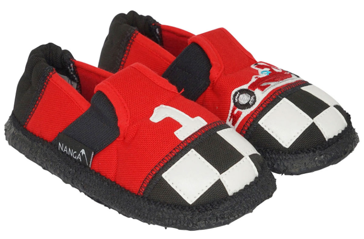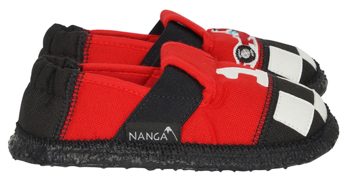 Produktinformationen "Flexible, bequeme BW Hausschuhe v. NANGA, Naturgummi Sohle in Rot / Schwarz RENNFAHRER"