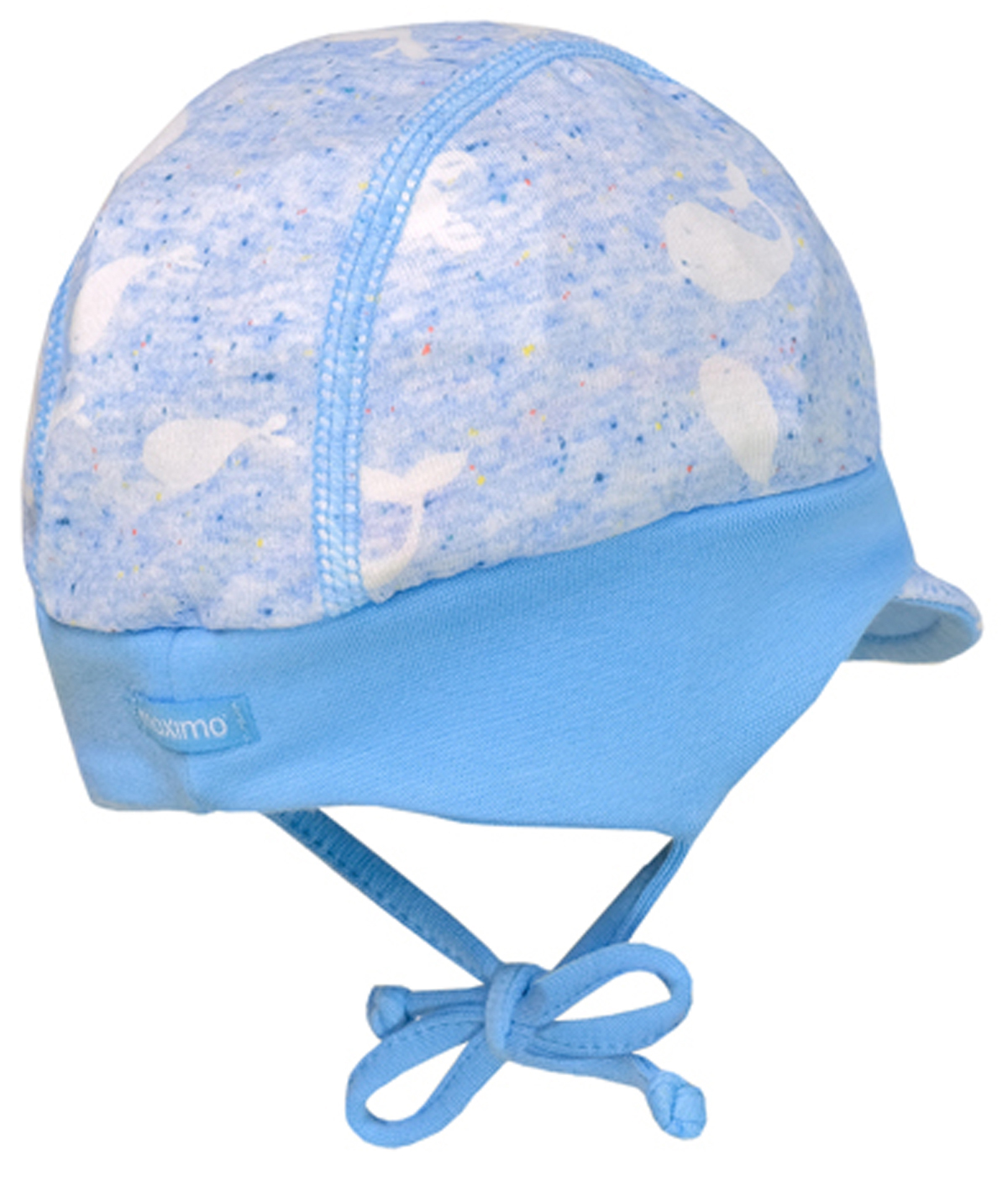 Die optimale Babymütze - sie sitzt locker leicht am Oberkopf, sehr gut über den Ohren, mit Mini Schirm, zum binden unter dem Kinn, aus ganz weichem Baumwoll Jersey mit Uni farbendem Jersey Einsatz für den bequemen Sitz, für Babys von dem Mützenprofi aus Chemnitz MAXIMO.