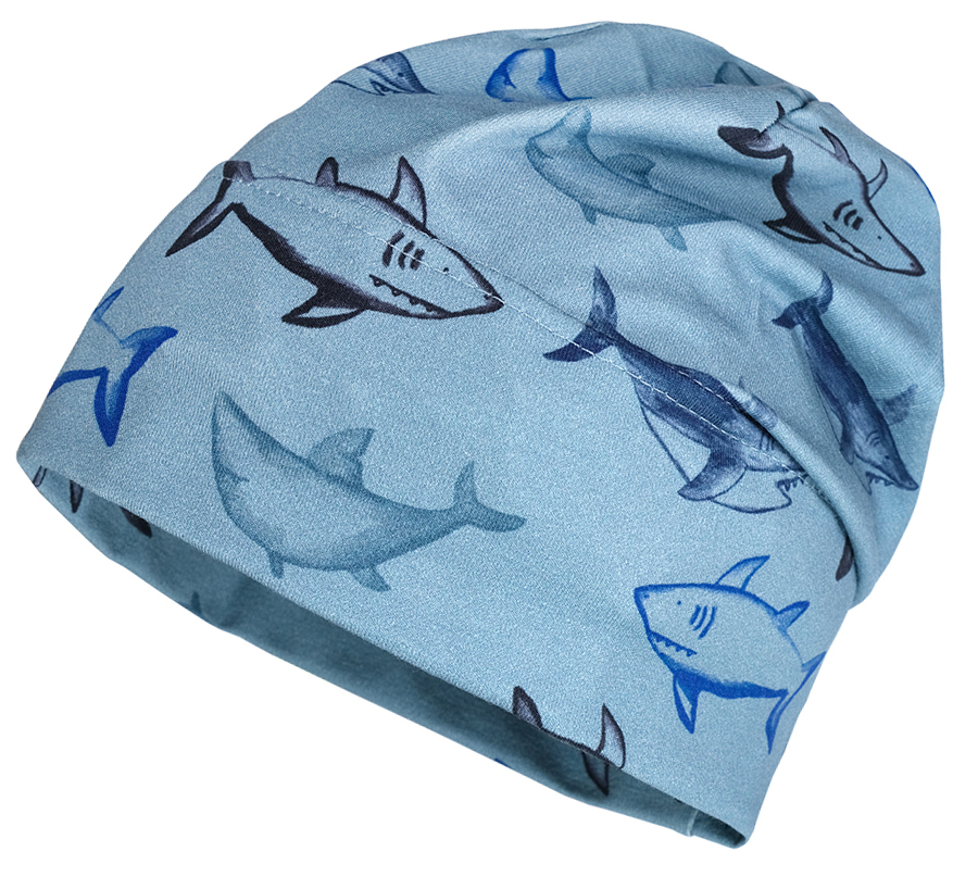 Produktinformationen "Wendebeanie aus BW Jersey in Navy Blau Uni -> AOP Hai, UPF 50+ von MAXIMO 122276"