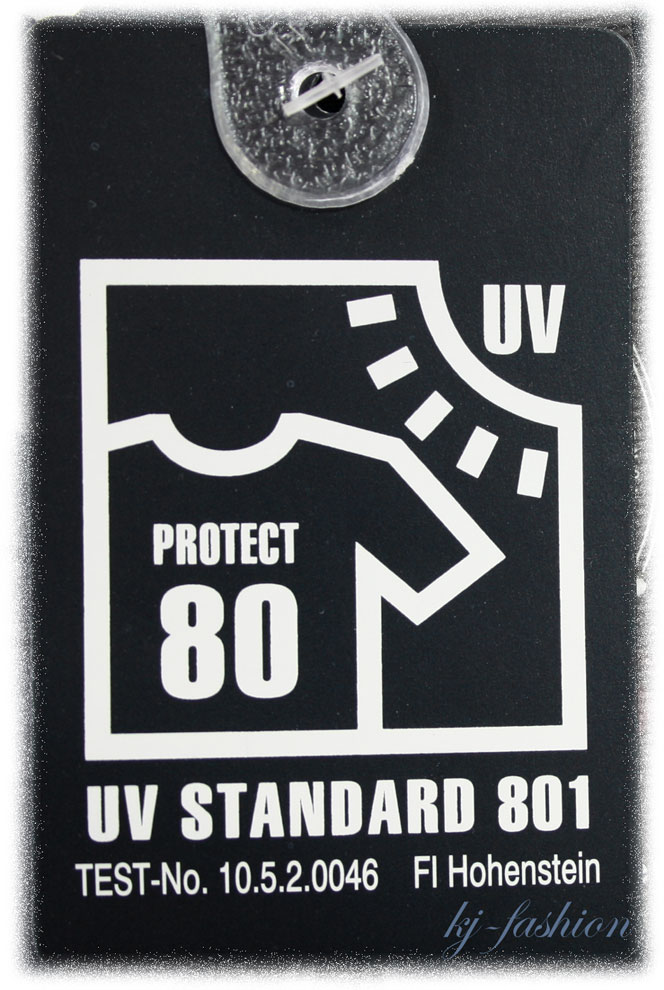 Der Stoff ist mit dem UV Schutz 80 versehen - getestet nach dem Australisch - neuseeländischem Standart - Prüfnummer siehe Foto.