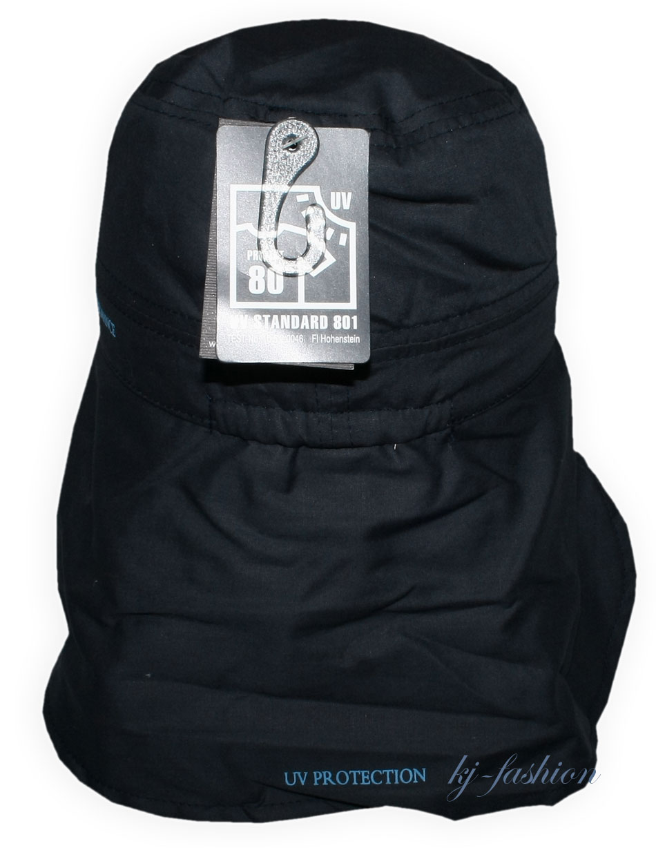 - mit einem langen Nackenschutz gearbeitet, der die Ohren und den gesamten Nacken vor Sonne schützt