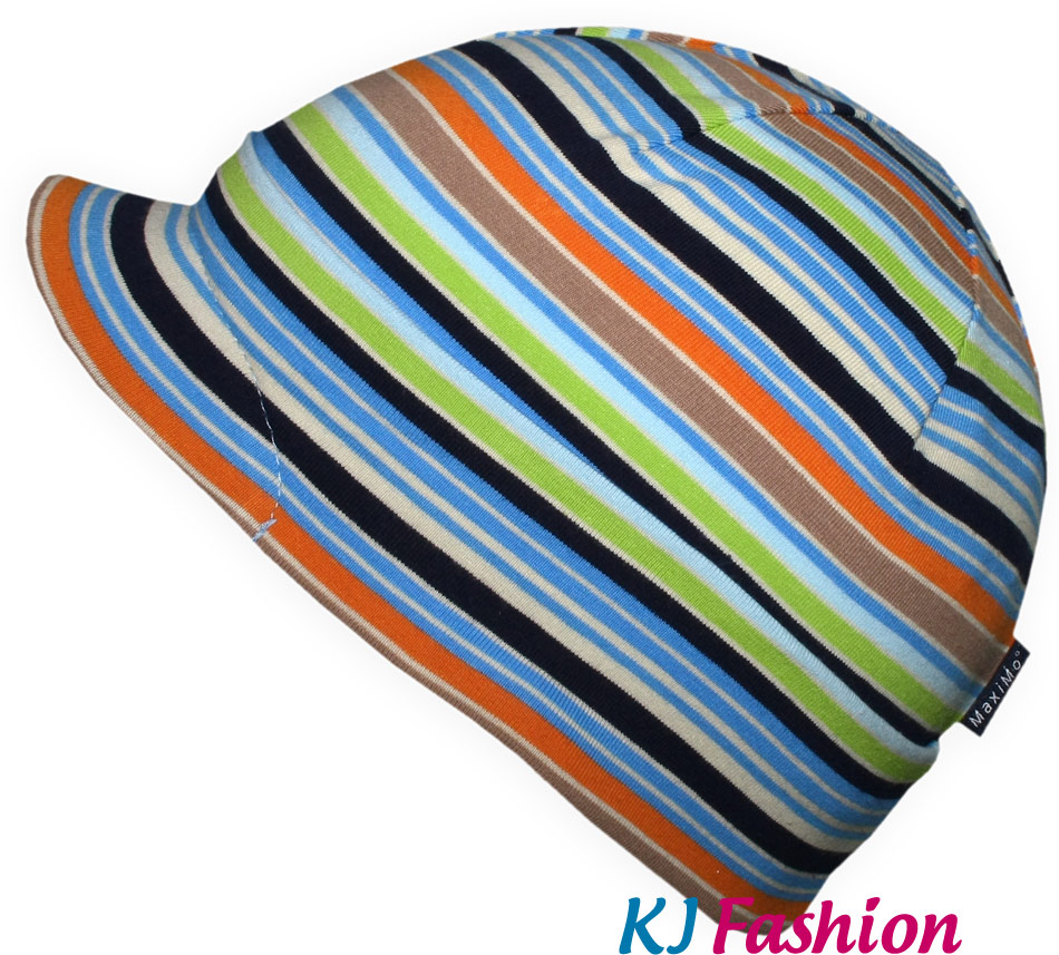 Leichte Jersey Mütze mit kleinem vorgebogenem Schirm, anliegend / kopfnah geschnittenem von MAXIMO in bunten Ringeln.