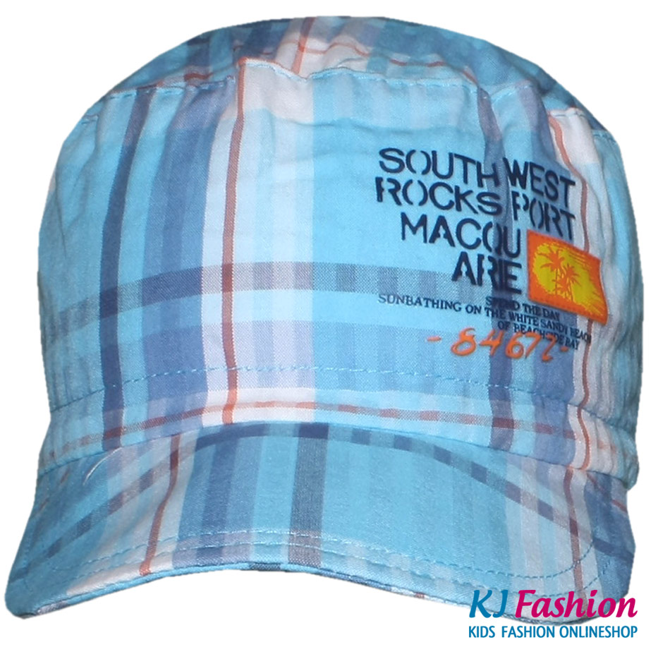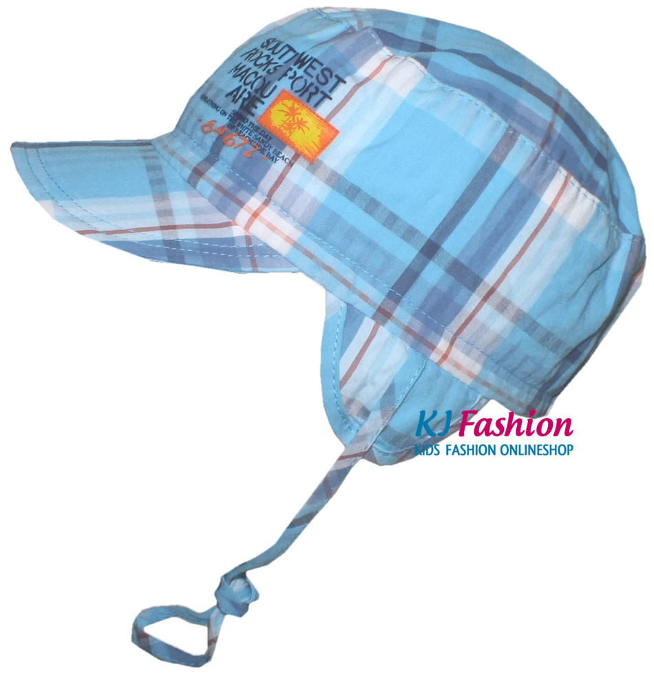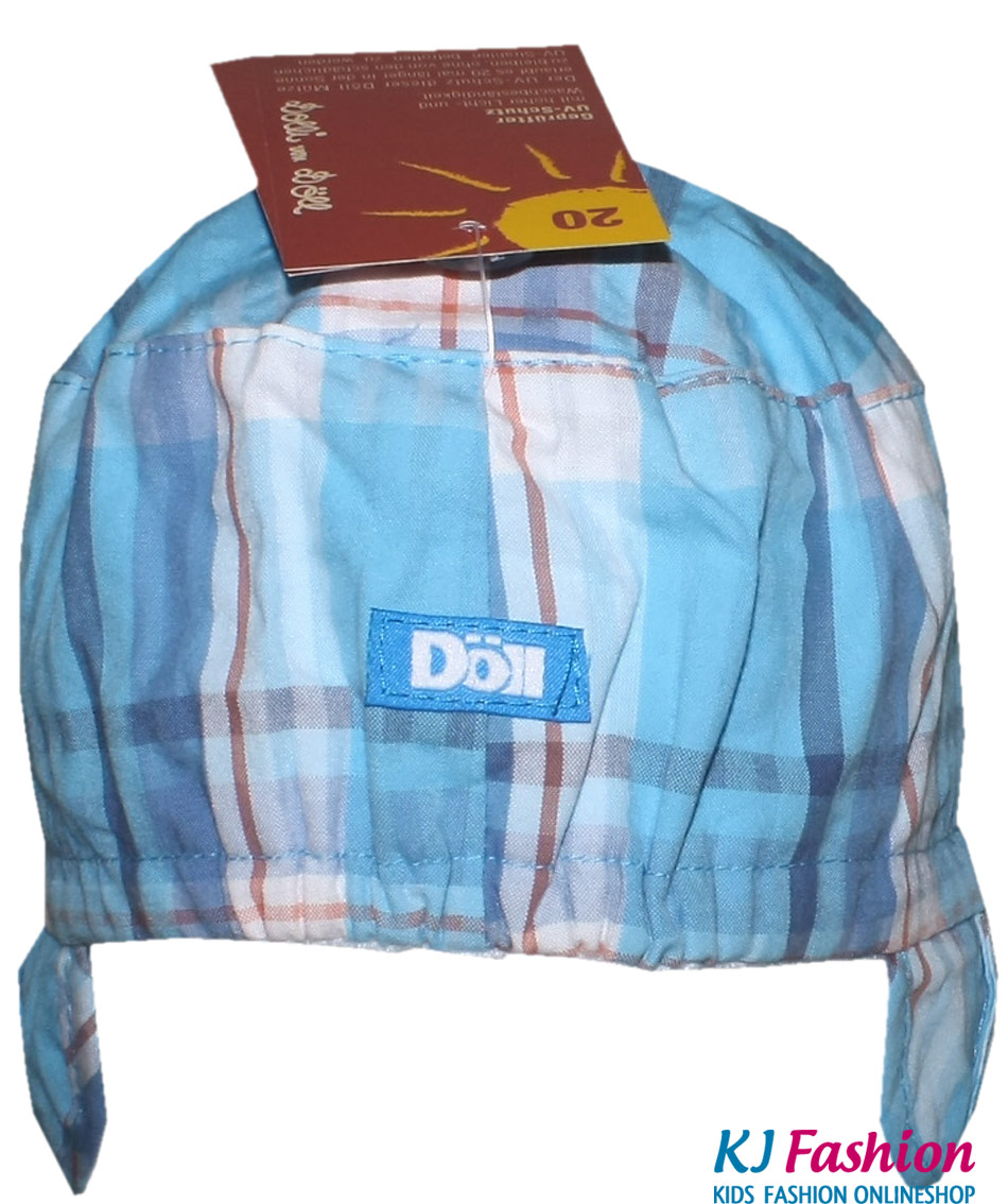 Luftig leichte Sommermütze zum binden für Jungen aus glatter Popeline Baumwolle in einem hellen Aquablau, Hellblau und Weiß Ton kariert mit dezentem Streifen in Rot / Orange und kleinem Patch in Orange seitlich bestickt von DÖLL. Das Material ist mit dem UV Schutz 20 getestet worden - das Kind kann so 20 mal länger in der Sonne bleiben und wird vor den gefährlichen UV A und UV B Strahlen geschützt. Modell: 161 616 2713 fb3081Farbe: Aquablau, Hellblau, WeißMaterial: 100% Baumwolle, leichte Popeline Baumwolle in glatt gewebter QualitätWäsche: 30°, nach dem waschen Mützen immer über einen Ballon ziehen und trocknen lassen - so bleiben die Maschen / das Material gedehnt und die Mütze bleibt in Form und bei der Größe. - leichter Sitz auf dem Kopf des Kindes dank des leichten Materials - flache Basecap Form mit Ausarbeitungen an den Ohren um diese vor Sonne zu schützen, weicher flexibler Schirm in knapper Länge - mit einem Bindeband gearbeitet - seitlich einem orangenen Patch bestickt, am Hinterkopf mit dem textilen DÖLL Logo - am Hinterkopf mit einem elastischen Einsatz gearbeitet für den optimalen Sitz - optimal sitzend ab Mitte der Stirn, über die Ohren gehend bis tief in den Hinterkopf gehend Eine sportlich und ganz leichte Sommermütze für Jungen von DÖLL.