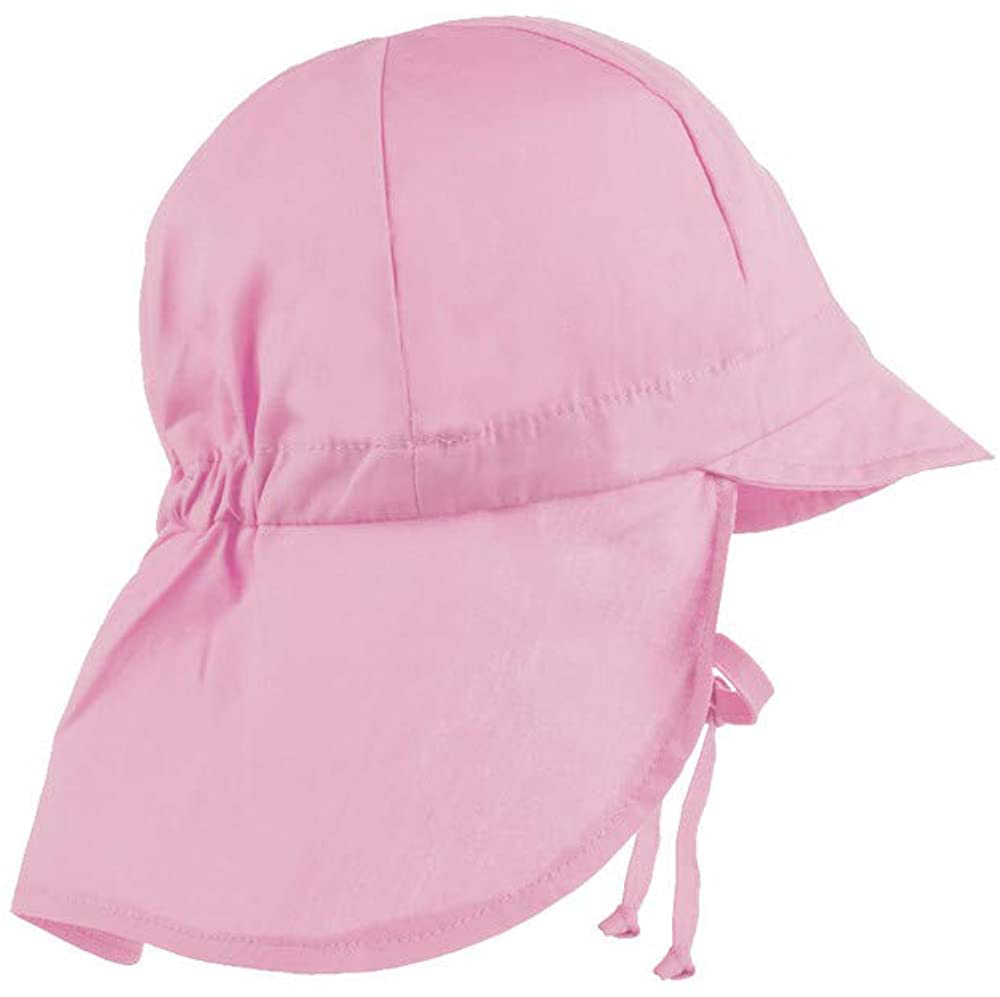 Schlichte Sommermütze zum binden aus leichter Baumwolle in Uni Rosa mit langem Nackenschutz und kleinem, flexiblem Schirm für Mädchen von dem Mützenprofi aus Chemnitz MAXIMO.