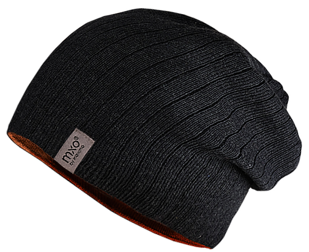 Lässig cooles Beanie aus weichem, dünnem Rippstrick doppelt gelegt da zum wenden, in Dunkelgrau - die Wendeseite in Rostorange, super dehnbar, aus reiner Baumwolle für Jungen von dem Mützenprofi aus Chemnitz MAXIMO.