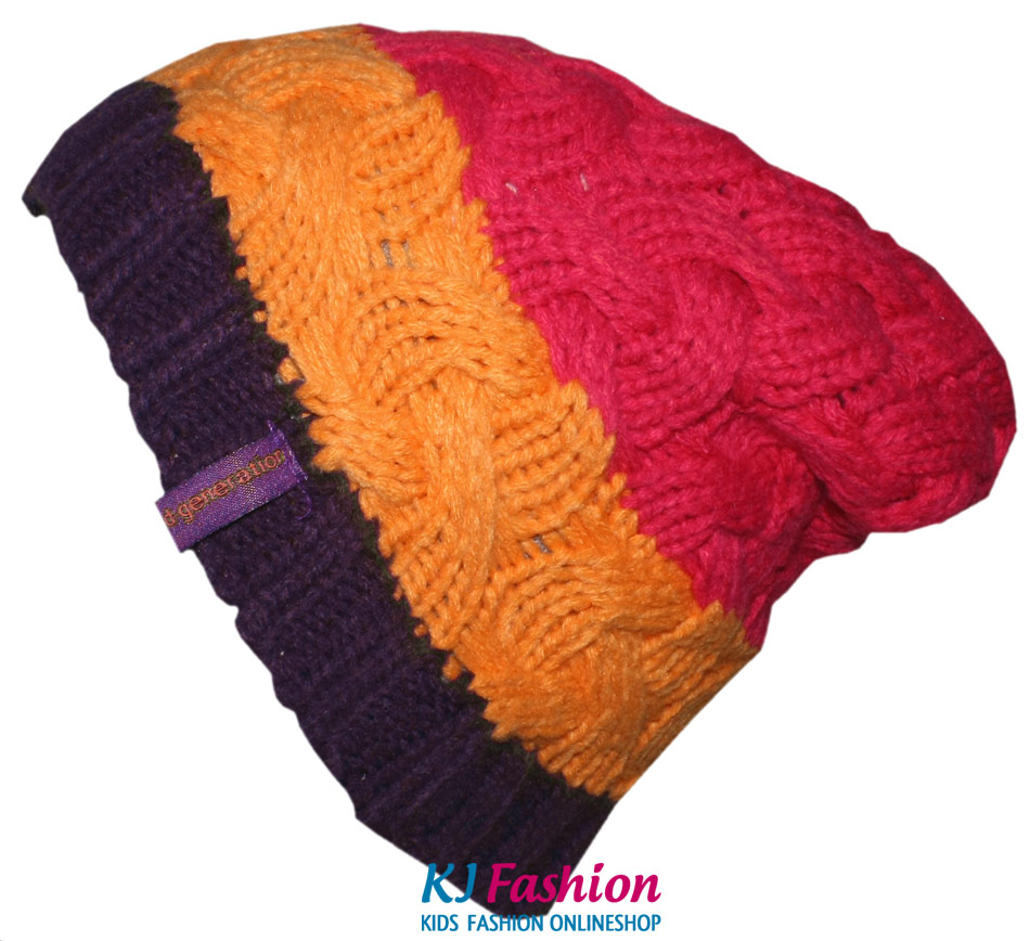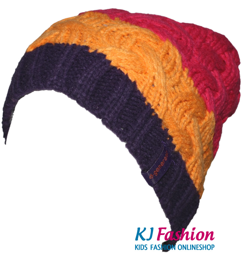 Produktinformationen "Grobstrickbeanie Tricolor in Lila, Orange, Pink von DÖLL mit Fleecebesatz Modell: 1428745174-7028"