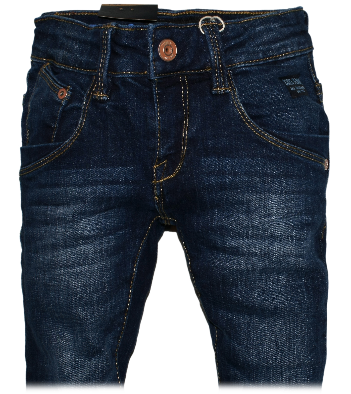 Super robuste und sportlich lässige Jeans aus richtigem Denim in einem dunklen Dark Blue mit leichter Waschung, Five Pocket Style, Slim Fitting für einen sehr guten Tragekomfort von dem niederländischem Kindermodelabel CARS JEANS.