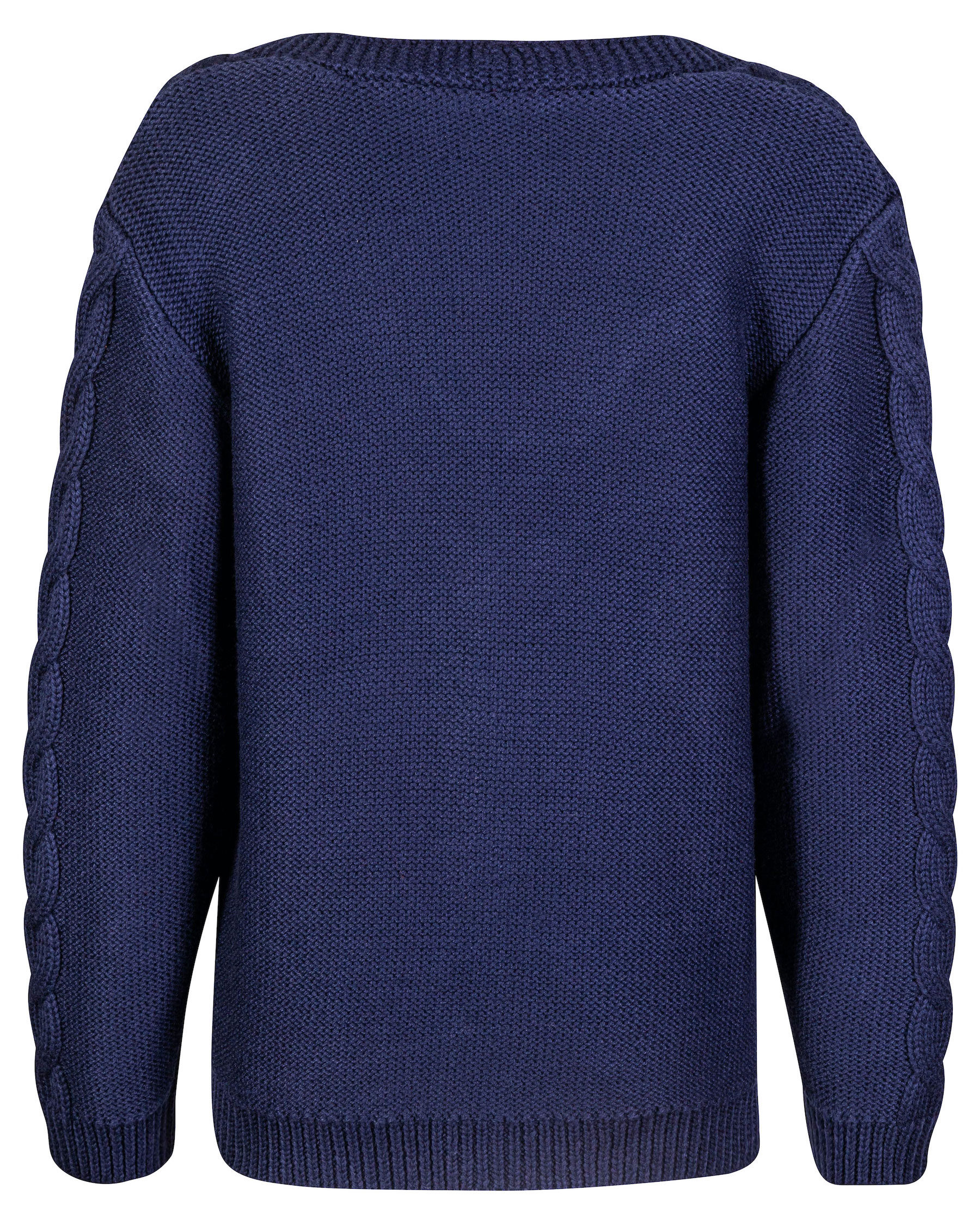 Schicke, dickere Strickjacke in Navy Blau mit Zopfmuster, V-Neck von HAPPY GIRLS 713110