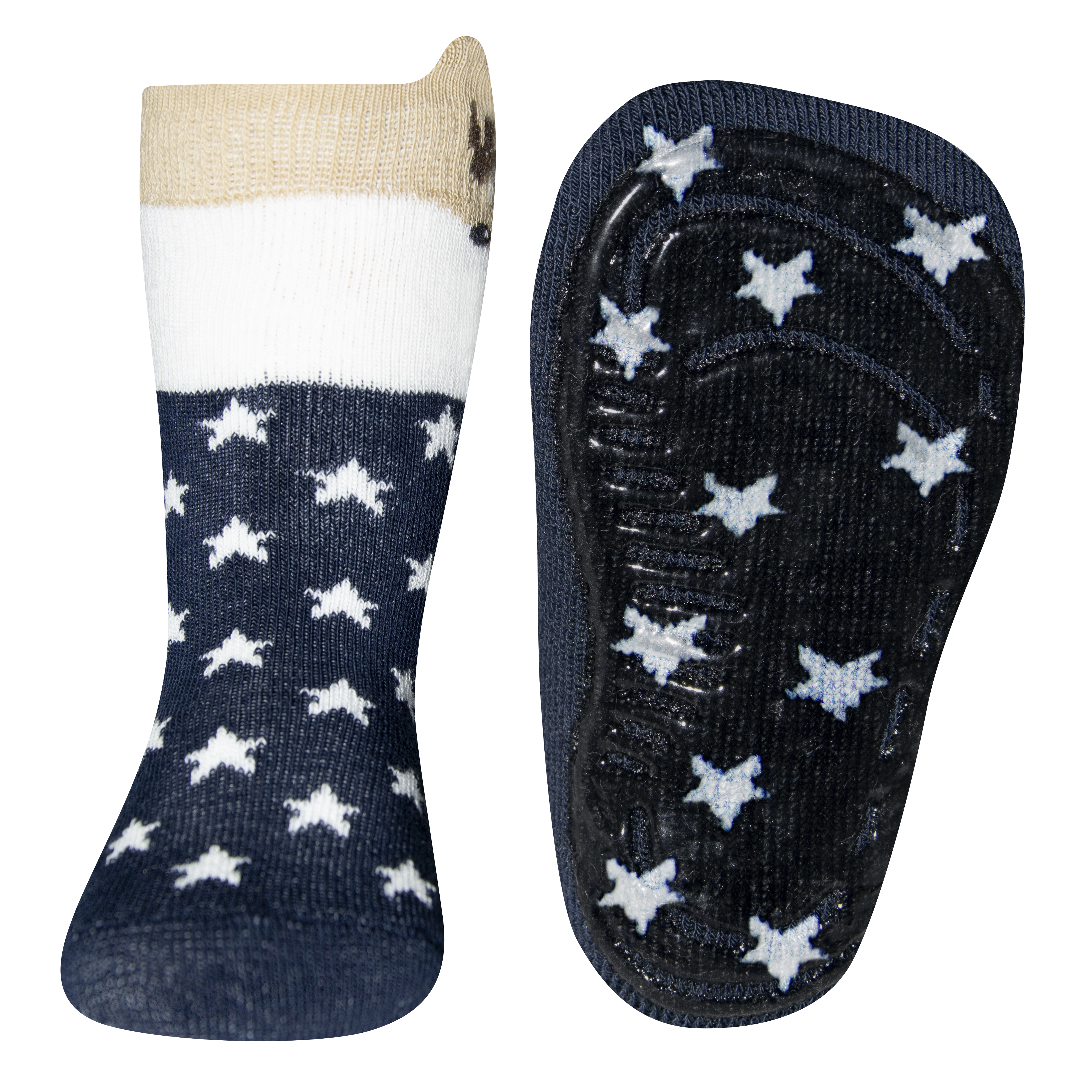 Rutschhemmende Stoppersocke, BW Mix mit Innenfrottee, Softstep Sohle von EWERS Motiv 3D Reh